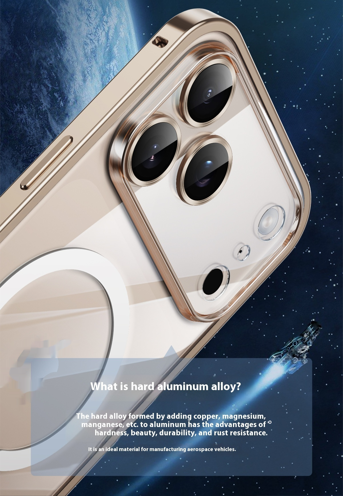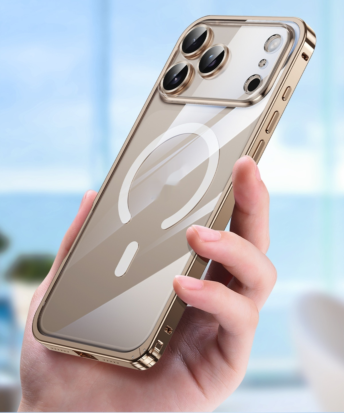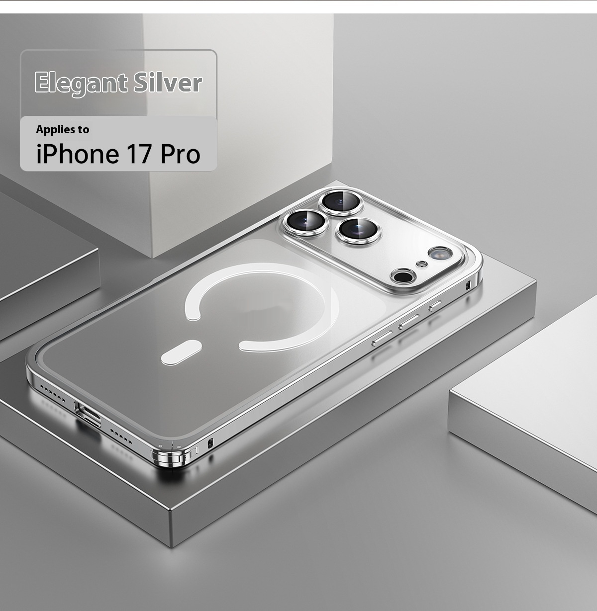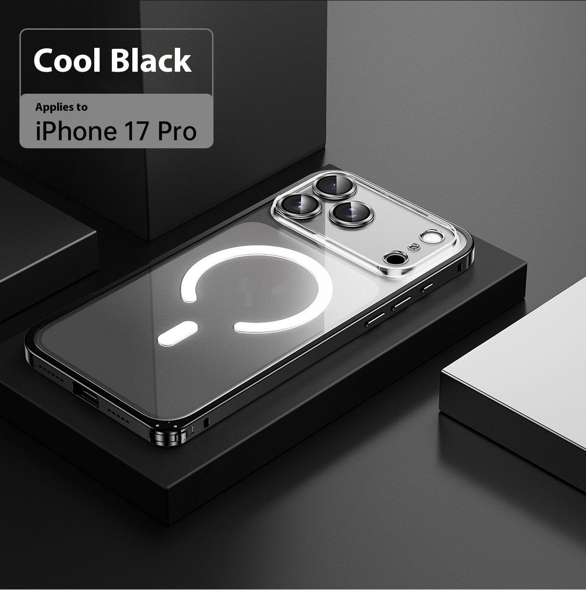 Applicable 17 Metal Frame Phone Case Magnetic Suction Spring Fastener Transparent Eagle Eye Lens Protective Cover